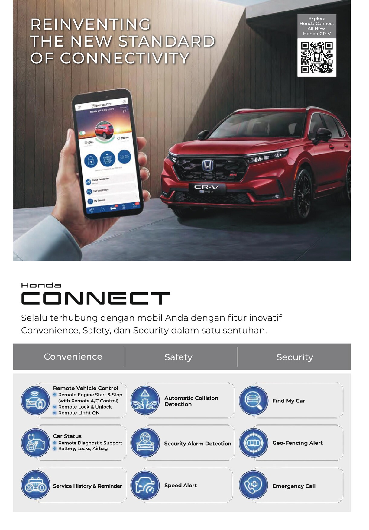 Fitur konektivitas canggih yang selalu menghubungkan Anda dengan mobil untuk menambah rasa aman dan nyaman di perjalanan.