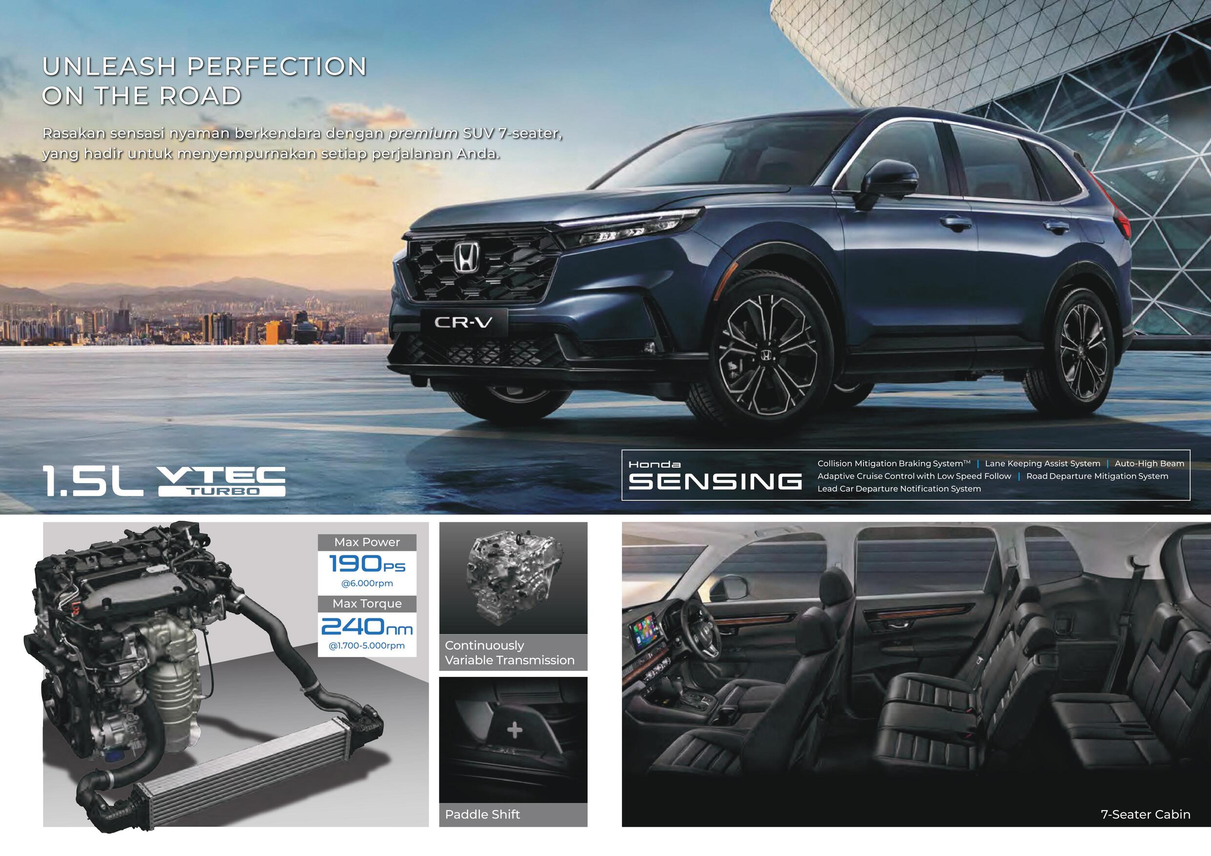 Jadilah yang terdepan dengan SUV andalan terbaru dari Honda, All New Honda CR-V yang kini hadir dalam pilihan mesin hybrid untuk konsumsi bahan bakar lebih hemat dan tenaga powerful.